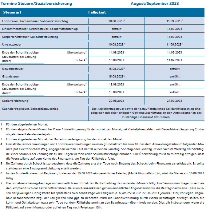 Wegzugsbesteuerung24. Juli 2023Aufteilung der Anschaffungskosten im Fall von Bondstripping bei im Privatvermögen gehaltenen Bundesanleihen18. August 2023 Termine Steuern/Sozialversicherung, August/September 2023 24. Juli 2023 Kategorien Termine Tags 08-2023
