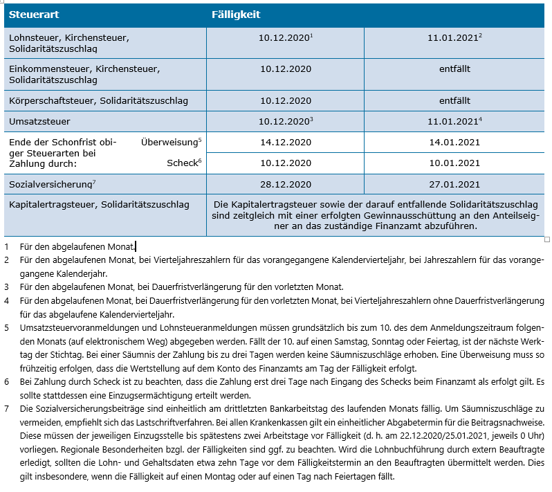 Gesetzlicher Mindestlohn steigt zum 1. Januar 2021 auf 9,50 Euro15. Dezember 2020Durchbruch bei der Fristverlängerung5. Januar 2021 Termine Steuern/Sozialversicherung – Dezember 2020/Januar 2021 15. Dezember 2020 Kategorien Termine Tags