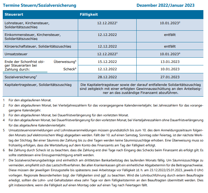 Dezember-Entlastung für Gas- und Wärmekunden kommt22. November 2022(Steuerliche) Änderungen 2022/202323. Dezember 2022 Termine Steuern/Sozialversicherung, Dezember 2022/Januar 2023 22. November 2022 Kategorien Termine Tags 12-2022