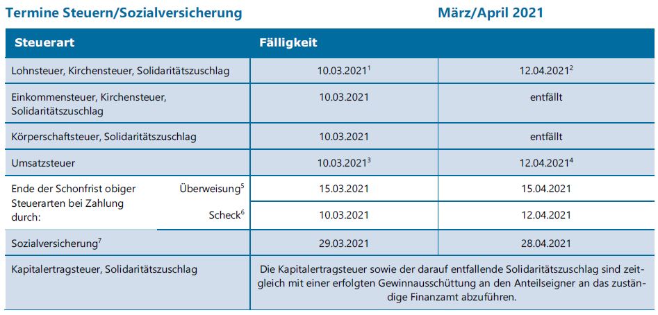 Rechte und Pflichten bei Homeoffice während der Corona-Pandemie16. März 2021Nichtbeanstandungsfrist der Länder bei Kassen läuft ab!23. April 2021 Termine Steuern/Sozialversicherung, März/April 2021 16. März 2021 Kategorien Termine Tags