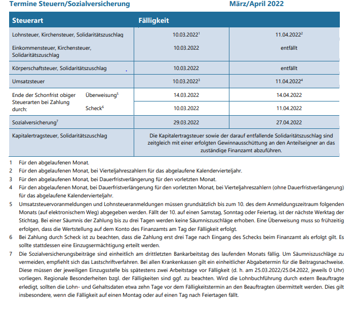 Kurzarbeit soll verlängert werden25. Februar 2022Anerkennung von Erschließungskosten: Allgemeinverfügung weist anhängige Verfahren zurück23. März 2022 Termine Steuern/Sozialversicherung, März/April 2022 25. Februar 2022 Kategorien Termine Tags 03-2022